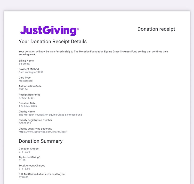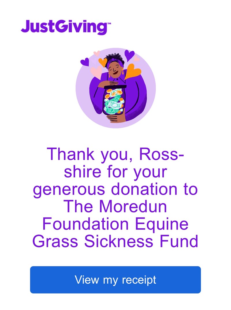 We are delighted, that thanks to you all, we have donated £1,112 to Equine Grass Sickness Fund from our Fun Show help on Sunday 28th September at Sheeppark -